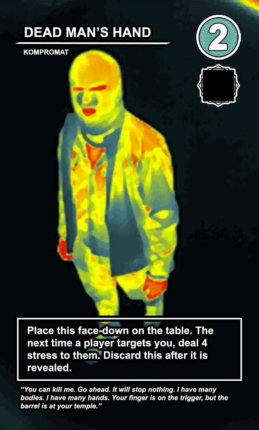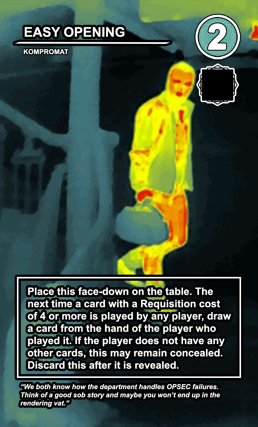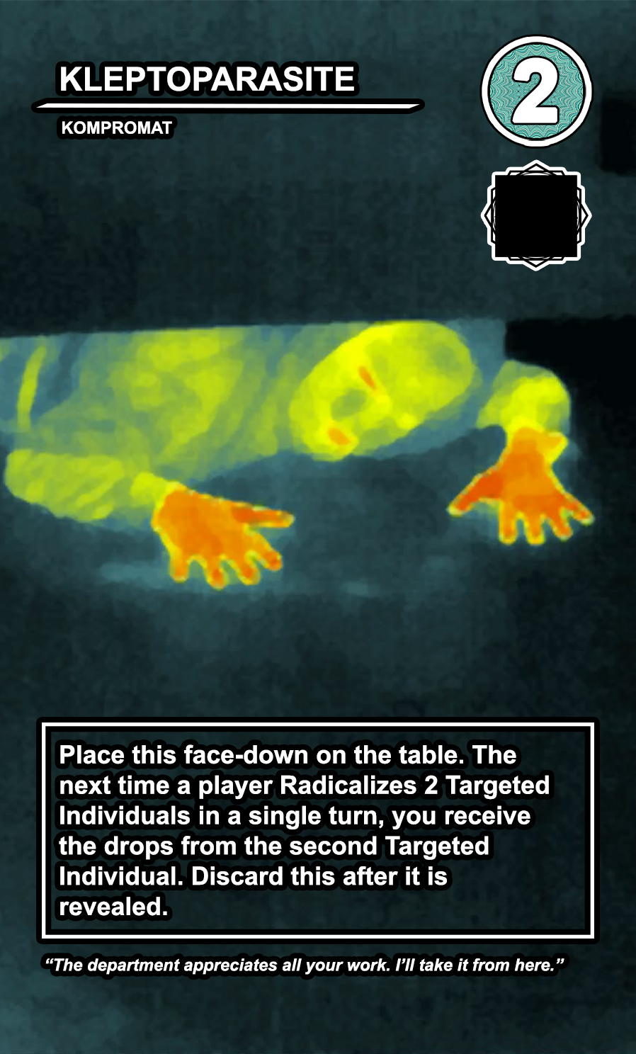 The entire game will be written and created by me, using infrared, thermal, and digital photography. If you want to know more, including seeing cards as they are developed or find out about upcoming playtests, please join the discord.