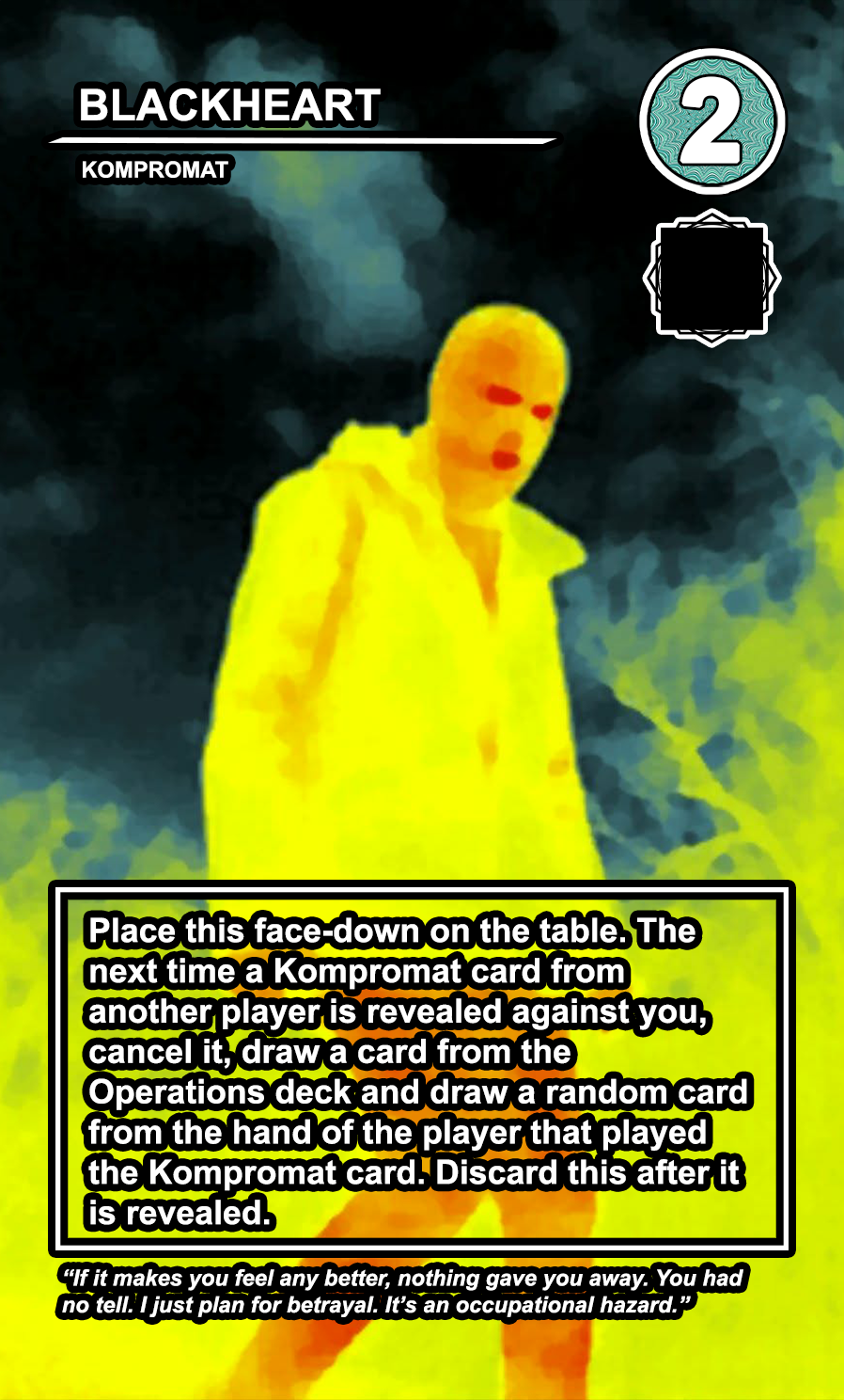 These cards are secrets that are played face-down on the table. These can be played very early in the game and can offer players a chance to disrupt other player’s actions before the game enters the COLLAPSE state.
